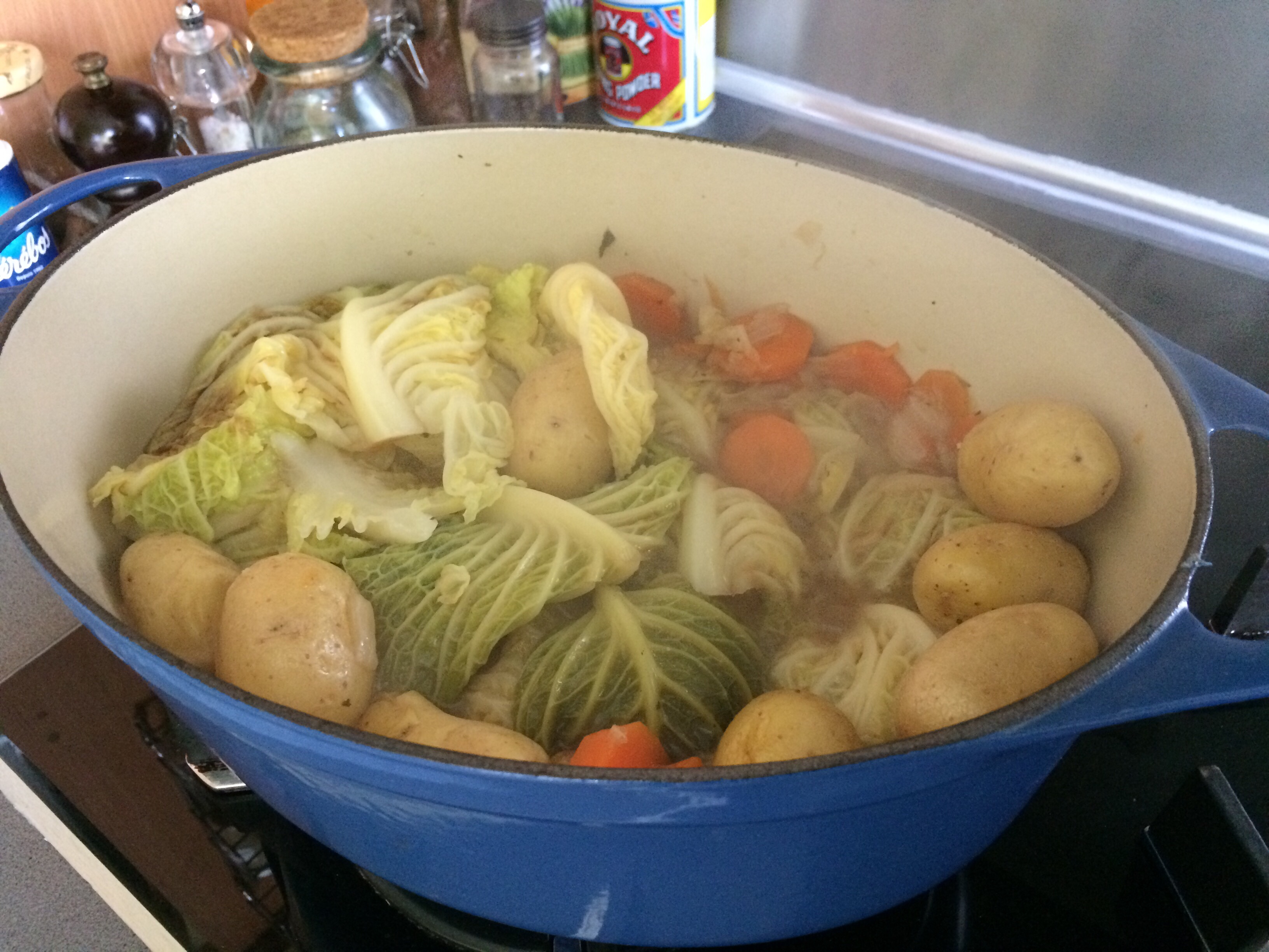 Vérifier la cuisson des carottes. Ajouter la cuillère de Viandox, mélanger. Si les carottes sont cuites, les petits choux peuvent être déposés dans la cocotte. Arroser les choux avec le jus du fond de la cocotte puis laisser le tout cuire 1/4 d’heure au minimum. Idéalement prévoir 1/2 heure pour que le jus réduise.