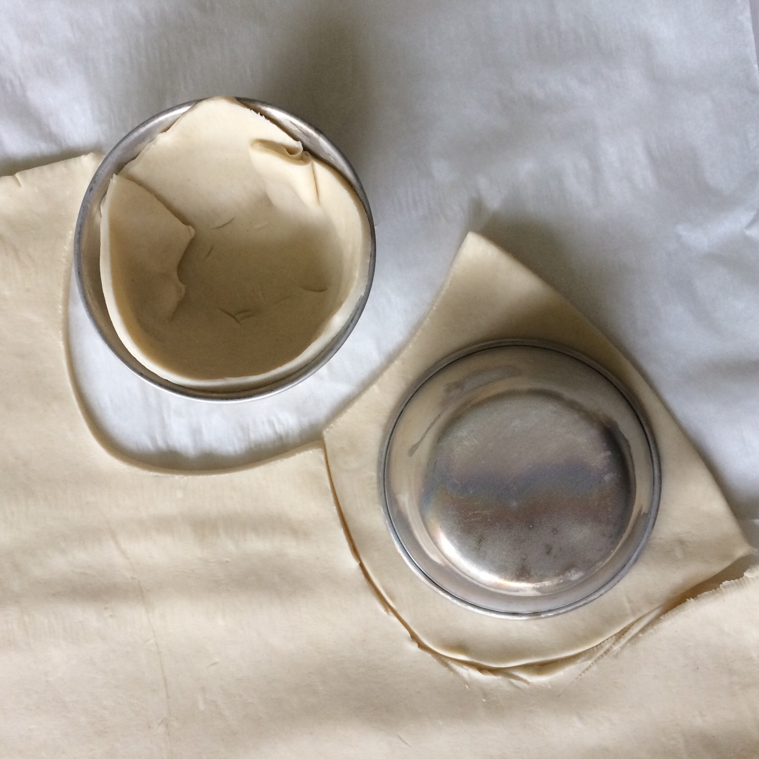 Avec une pâte feuilletée, j’ai réussi à faire 10 pasteis. J’ai fait des photos pour montrer comment vous y prendre. J’utilise des moules authentiques pour pasteis mais vous pouvez utiliser les moules en silicone pour muffin. Cela marchera très bien aussi. Mon diamètre pour comparaison est de 7 cm.