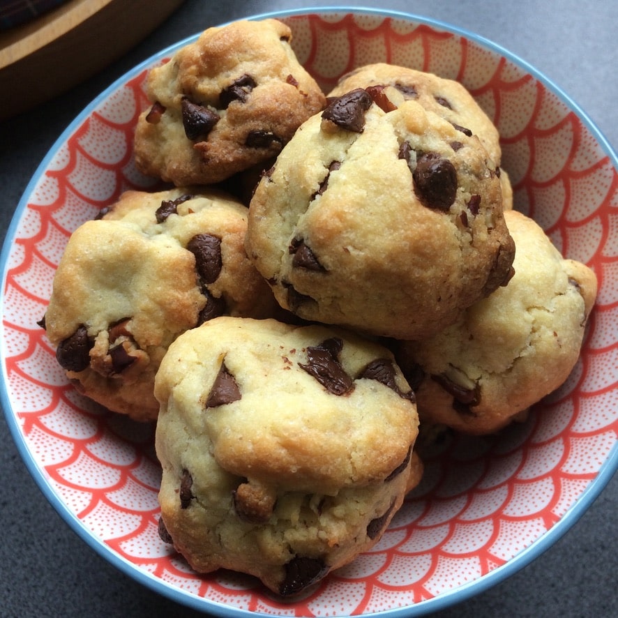 Et pour finir … avec le petit reste de pâte sablée, j’ai fait des cookies ! Il m’a suffit d’ajouter des pépites de chocolat et quelques noix de pécan. C’est pas mignon. Voilà ce que l’on peut faire un reste de pâte à tarte, ça aurait été bête de gâcher :