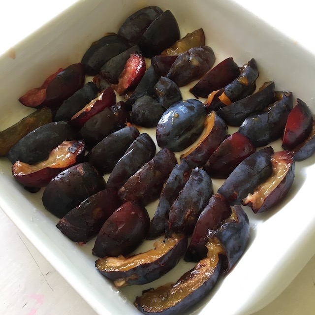 Versez la crème en laissant le fruits légèrement déborder. A la cuisson, ils pourront caraméliser. Enfournez à mi-hauteur et laissez cuire 20 mn environ. Au bout d’1/4 d’heure saupoudrez le plat d’une cuillère à soupe de sucre.