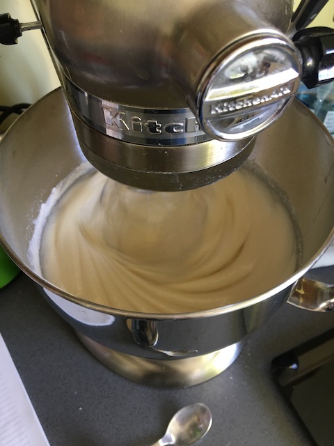 Dans un saladier, mélangez les oeufs et le sucre. Fouettez jusqu’à ce que la couleur jaune des oeufs blanchisse. Ajoutez la farine et continuez à mélanger.