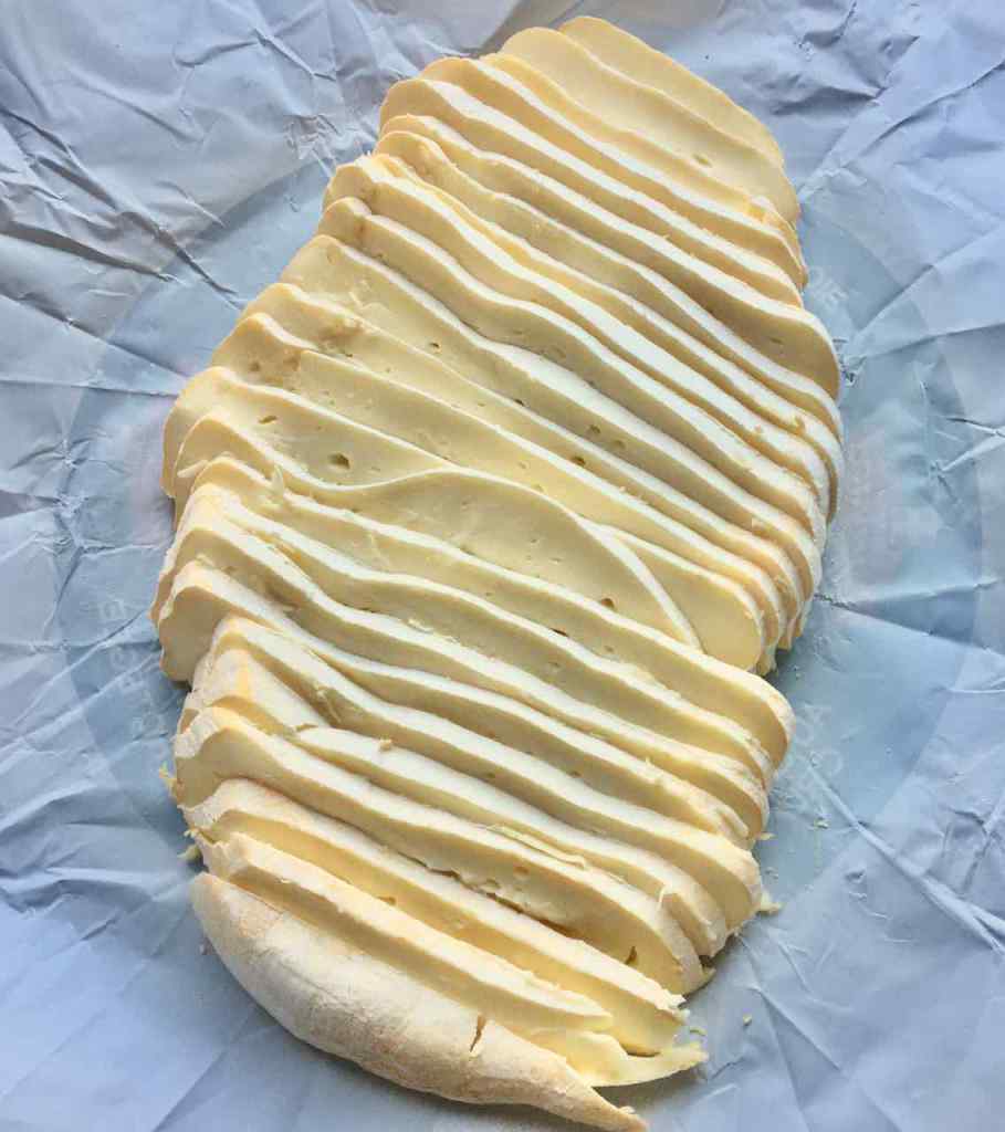 Découpez le fromage en lamelles et réservez-les sur une assiette. Epluchez les oignons. Coupez chaque oignon en 4, puis en lamelles.