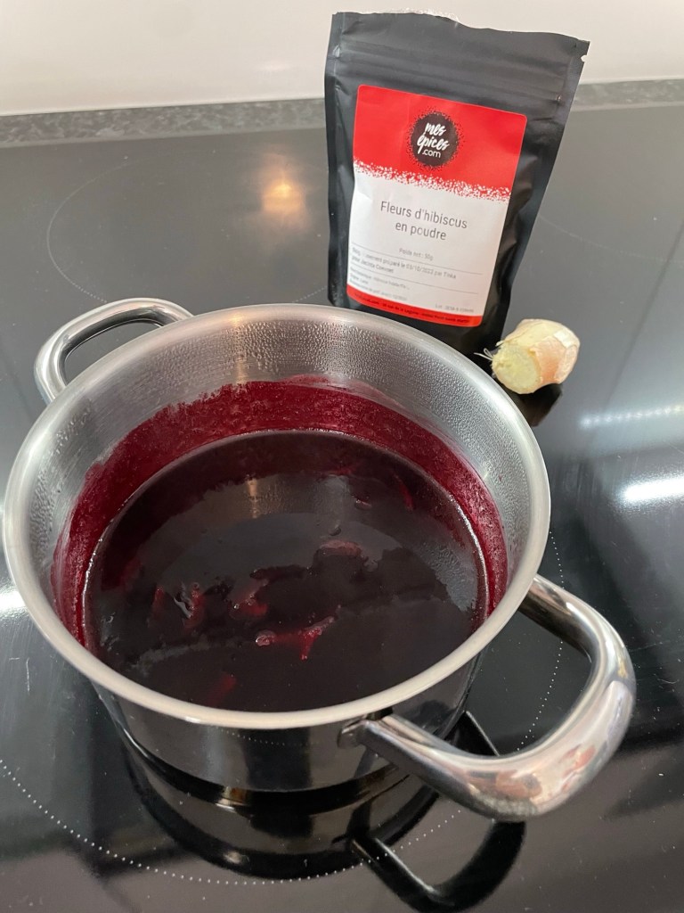 - 3 cuillères à soupe d’hibiscus en poudre